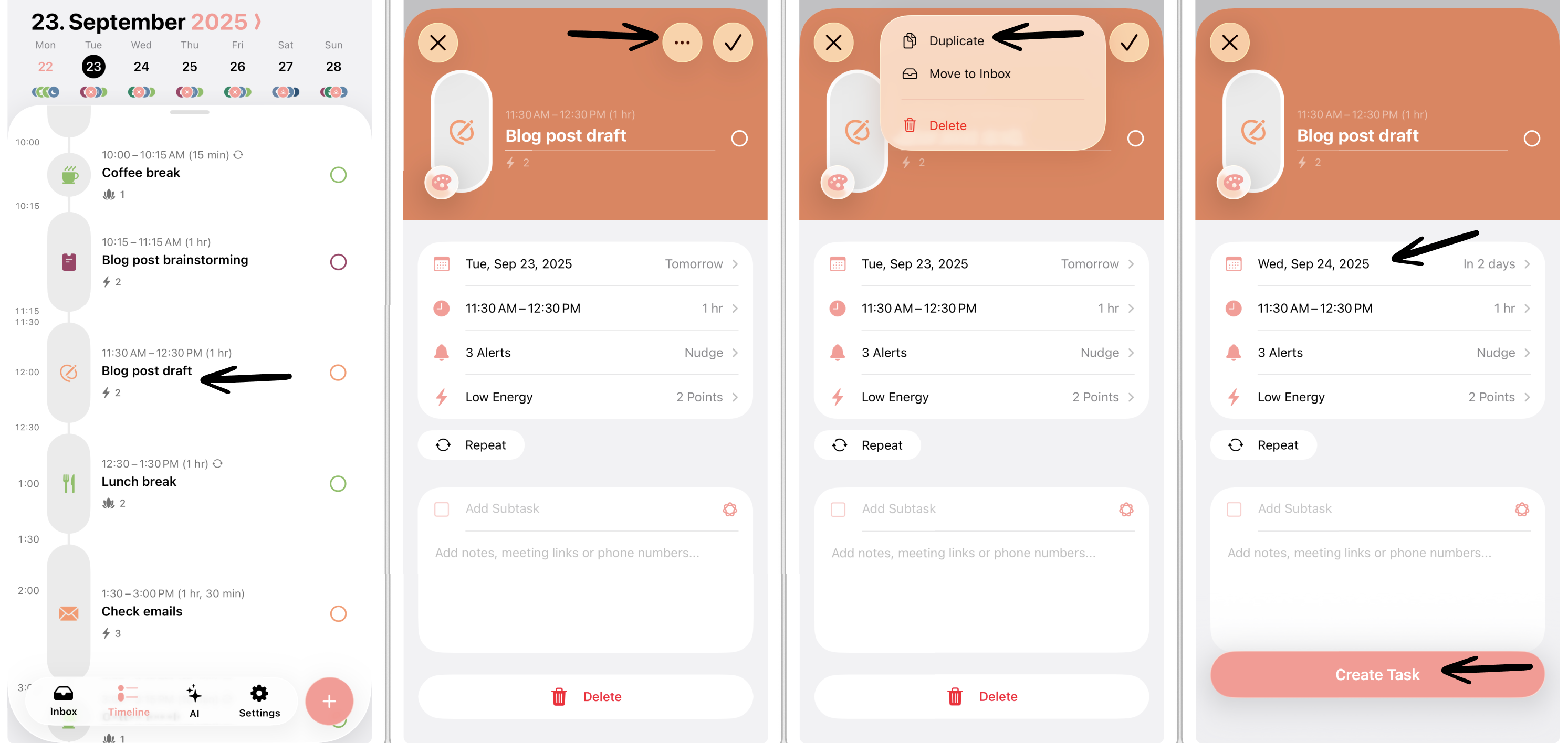 Following, you can learn how to copy a specific task or a whole day. Please note that the copy day feature is not available on 🤖 Android and 🌐 Structured Web yet.