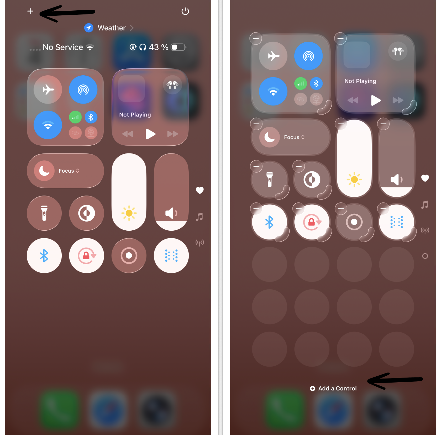 Once you are in the editing mode, tap on + Add a Control at the bottom of the screen.